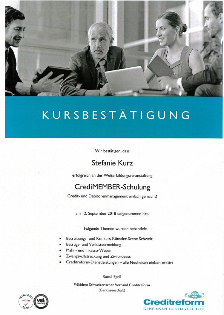 Teilnahme an der Creditreform-Schulung "Debitorenmanagement einfach gemacht!"