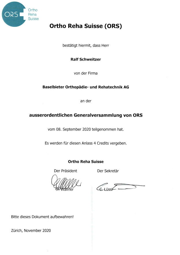 Wir nehmen an der ausserordentlichen Generalversammlung von OrthoRehaSuisse teil.