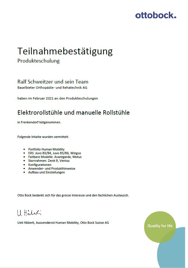 Die Firma OttoBock hat uns in zwei Schulungen auf den neusten Stand ihrer Rollstühle gebracht.