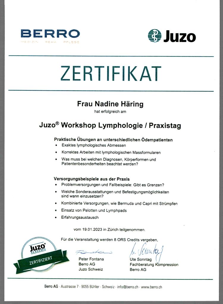 Nadine Häring hat sich im Bereich der Kompressionsversorgungen weitergebildet und den Lymphologie Praxistag besucht.